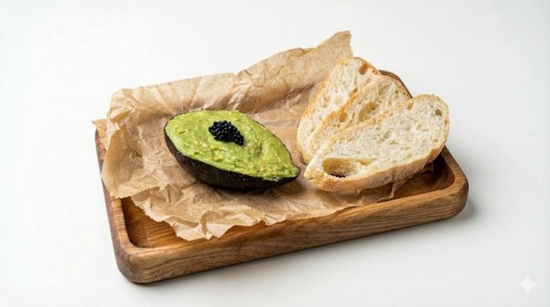 Лосось, гуакамолле из авокадо (сок лайма, соль, оливковое масло, авокадо), соус Минтайка (майонез, сметана, тобико, мёд,поре лайм, соль, уксус бальзамический), чиабатта, икра палтуса